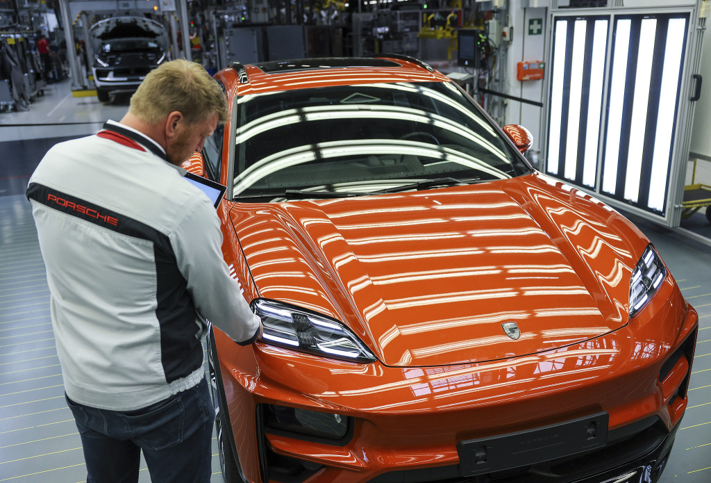 On May 6, 2024, local time, in Saxony, Germany, a Porsche employee inspected an all-electric Porsche Macan at the quality control center of the Leipzig plant. Visual China Photo
