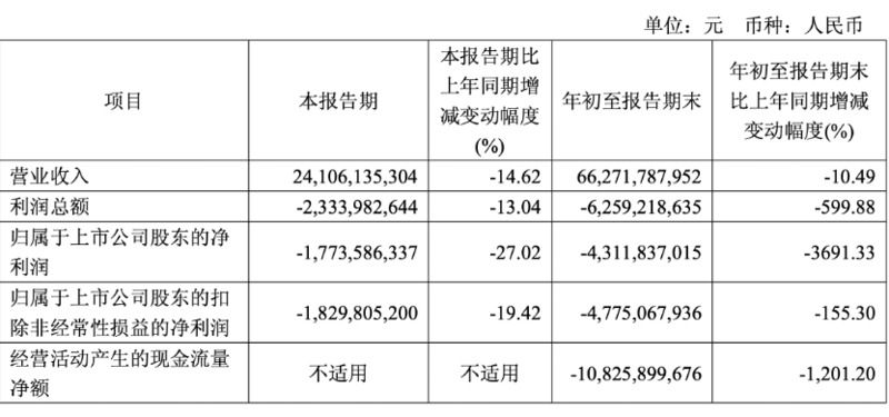 In the first three quarters of this year, GAC Group's net profit attributable to shareholders of listed companies was -4.312 billion yuan, a year-on-year decline of 3691.33%. However, it should be noted that this significant increase in losses was not only due to declining vehicle sales, but also due to the valuation premium resulting from the listing of GAC's Ruqi Mobility on the Hong Kong Stock Exchange in the same period last year.