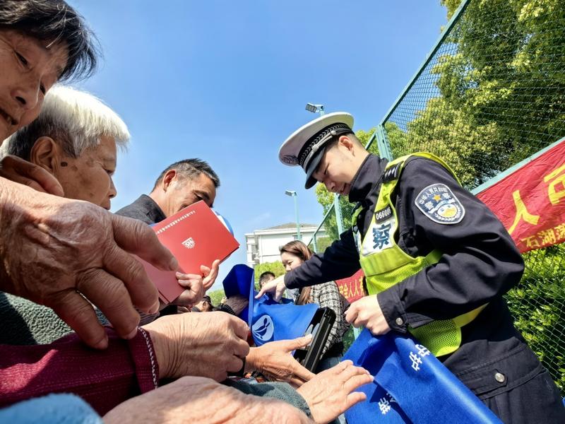 Songjiang traffic police conducted a traffic safety awareness campaign to promote respect for and care for the elderly. (Photo provided by Shanghai Municipal Public Security Bureau Traffic Management Corps)