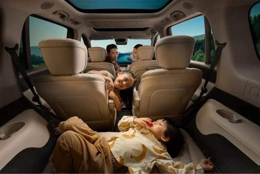 In terms of space, the Fengyun T11 boasts a length exceeding 5.2 meters and a 3120mm wheelbase, creating a truly comfortable six-seat layout. The 1022mm legroom in the second row and the fully electric seats in the third row allow even passengers up to 1.9 meters tall to stretch out comfortably. It also features a 1.8m double bed unlocked with one-button voice control, a massive 1590L trunk, and 40 storage spaces, making it suitable for diverse scenarios such as family trips and camping.