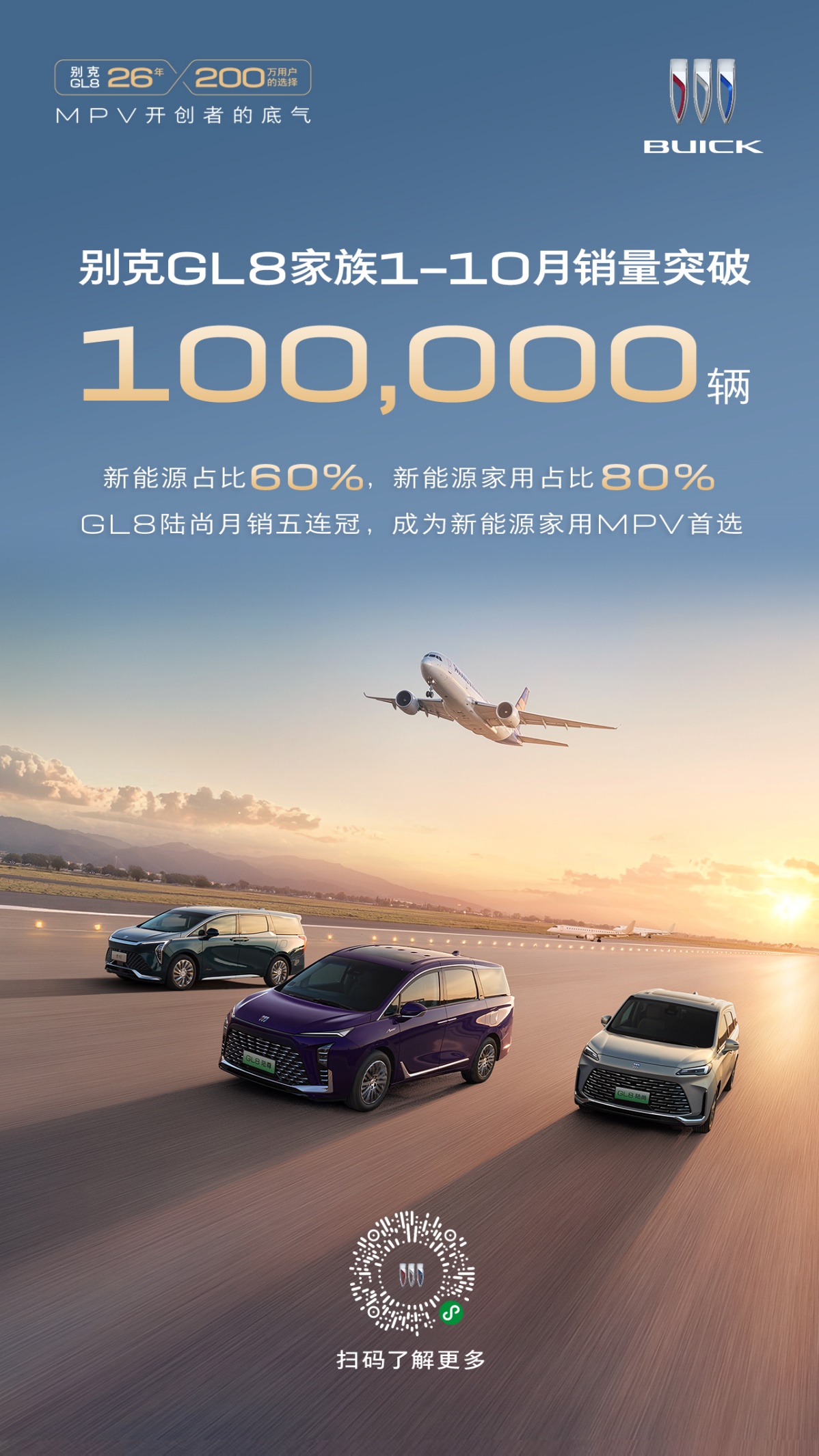 Currently, the core demands of domestic MPV users are upgrading from a single focus on spaciousness to a luxurious and comfortable experience across all scenarios. Based on a precise understanding of the current MPV market needs, the Buick GL8 family has achieved steady sales growth through continuous self-iteration and a solid push for new energy transformation. Latest data shows that from January to October this year, the GL8 family's cumulative sales exceeded 100,000 units. Among them, the GL8 Land Cruiser continued its strong sales momentum, achieving five consecutive months of top sales in the 250,000 RMB-level new energy MPV segment, opening up a new growth engine in the new energy family MPV market. The GL8 Land Zun, built to the industry's highest standards, continuously enhances its luxurious comfort and intelligent experience, becoming the top choice for users of luxury cars like those from BBA (BMW, Mercedes-Benz, Audi) who are upgrading or replacing their vehicles.