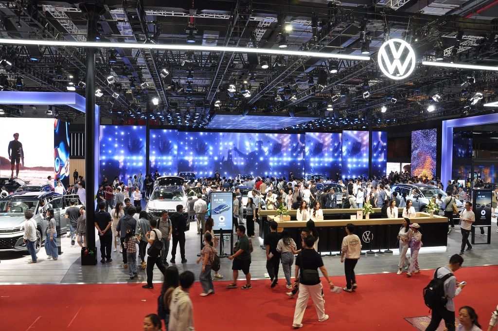 The Volkswagen booth at the Shanghai Auto Show on May 2, 2025. (Visual China photo)